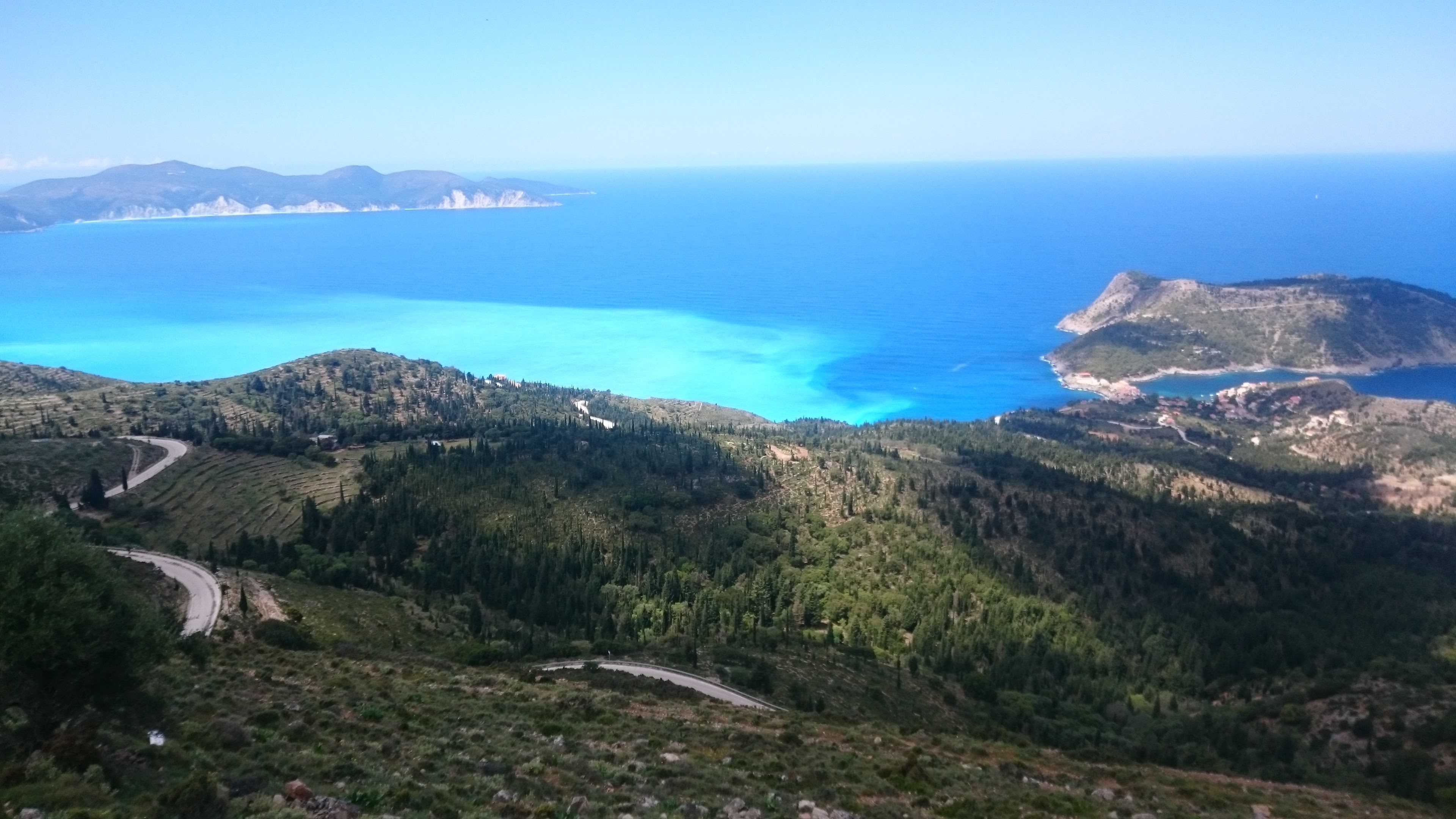 Apparently, there are no rentable cars anywhere near the port at this time of year. We decide to walk in the direction that we think a town is. After following signs for a car rental place that led to nowhere, we sat down to eat and contemplate what to do next. Yadda yadda yadda next thing we know were sitting in the backseat of a rickety car being driven by some Greek waiter’s dad who doesn’t speak English through the impossibly windy mountains to a town called Sami that’s over an hour away. Rumour had it Sami had rental cars. We made a bit stop at the driver’s house. Not entirely sure why.