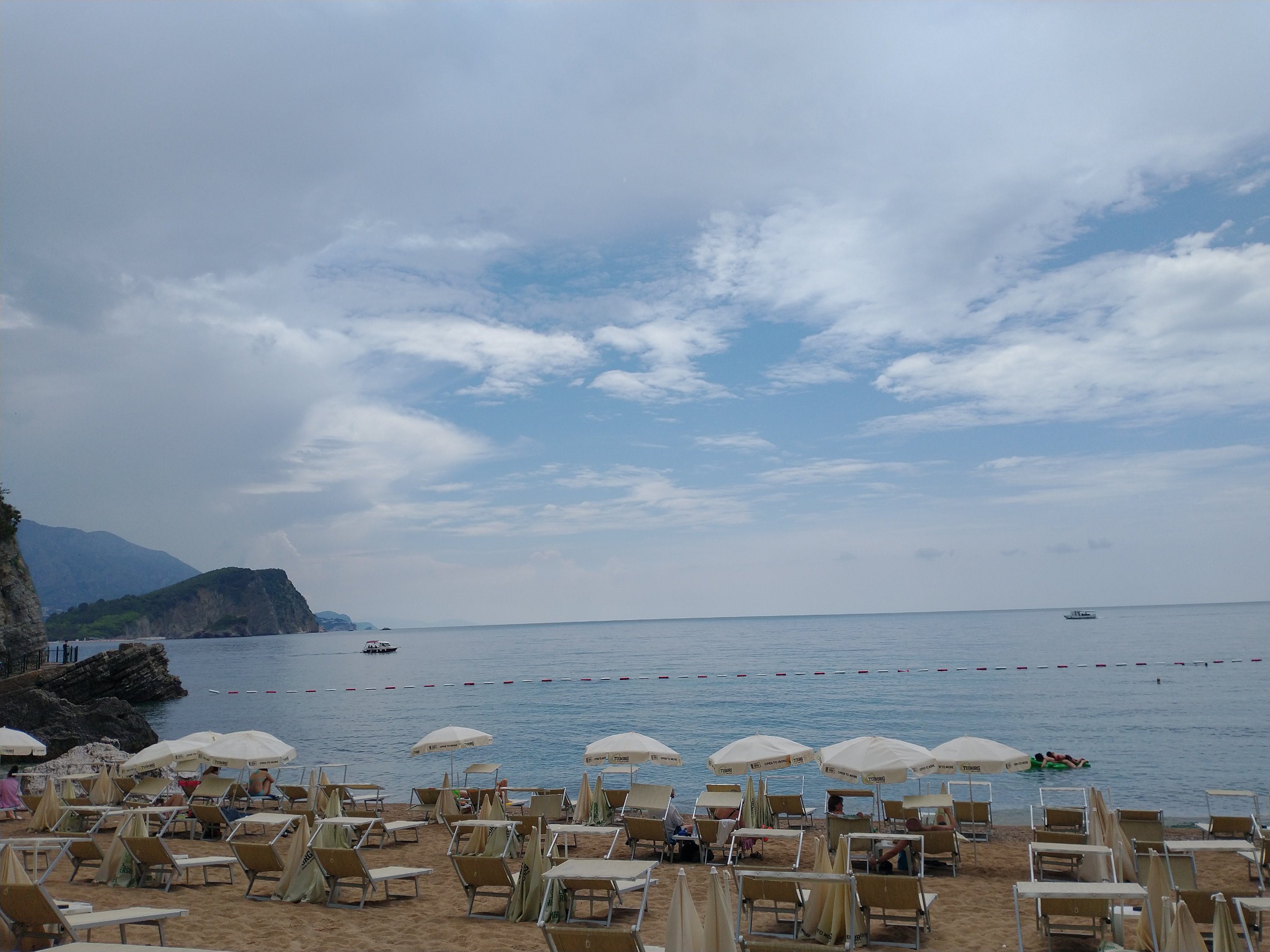 Mogren beach that you need to walk through old town to get to is a goodie. You can rent chairs, but also there is plenty of space you can sit for free.