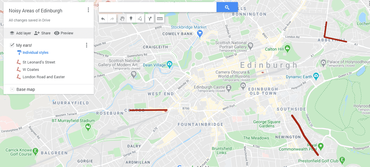 St Leonard’s Street has the ambulance and fire trucks blaring down it at all hours of the night. I lived on Parkside street (off St Leonard’s) and there is a bus stop nearby as well, which didn’t help the situation. London and Easter Roads are home to the weekly parties of sports fanatics from the nearby stadium. W Coates is hustling and bustling with delivery trucks and Haymarket station commuters. This goes without saying that all major roads will have noise as well.