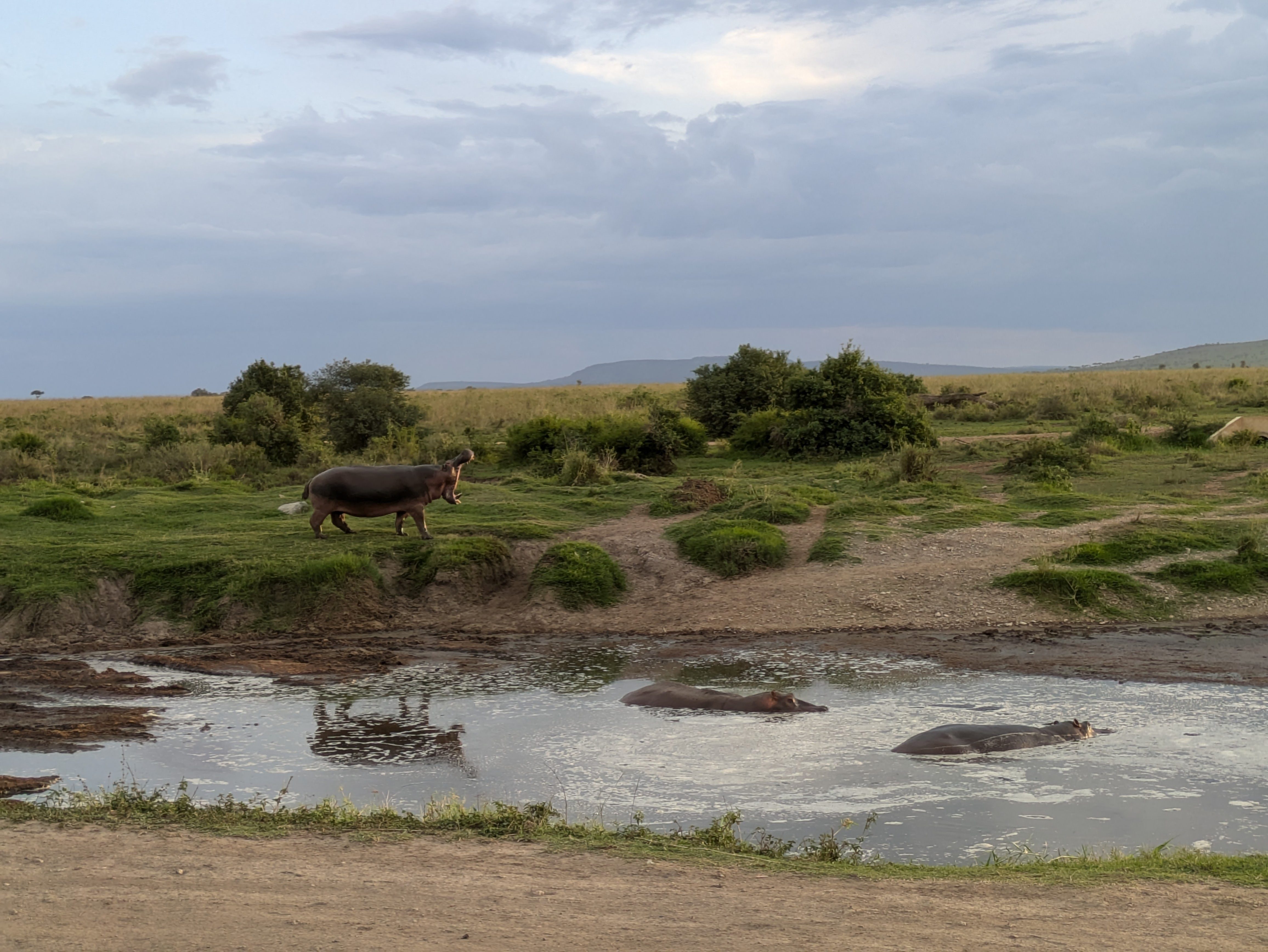 There were two rhinos in the distance. With binoculars, the first one I couldn’t see the difference between a rock and the rhino. The second one I could make out its outline and horn.