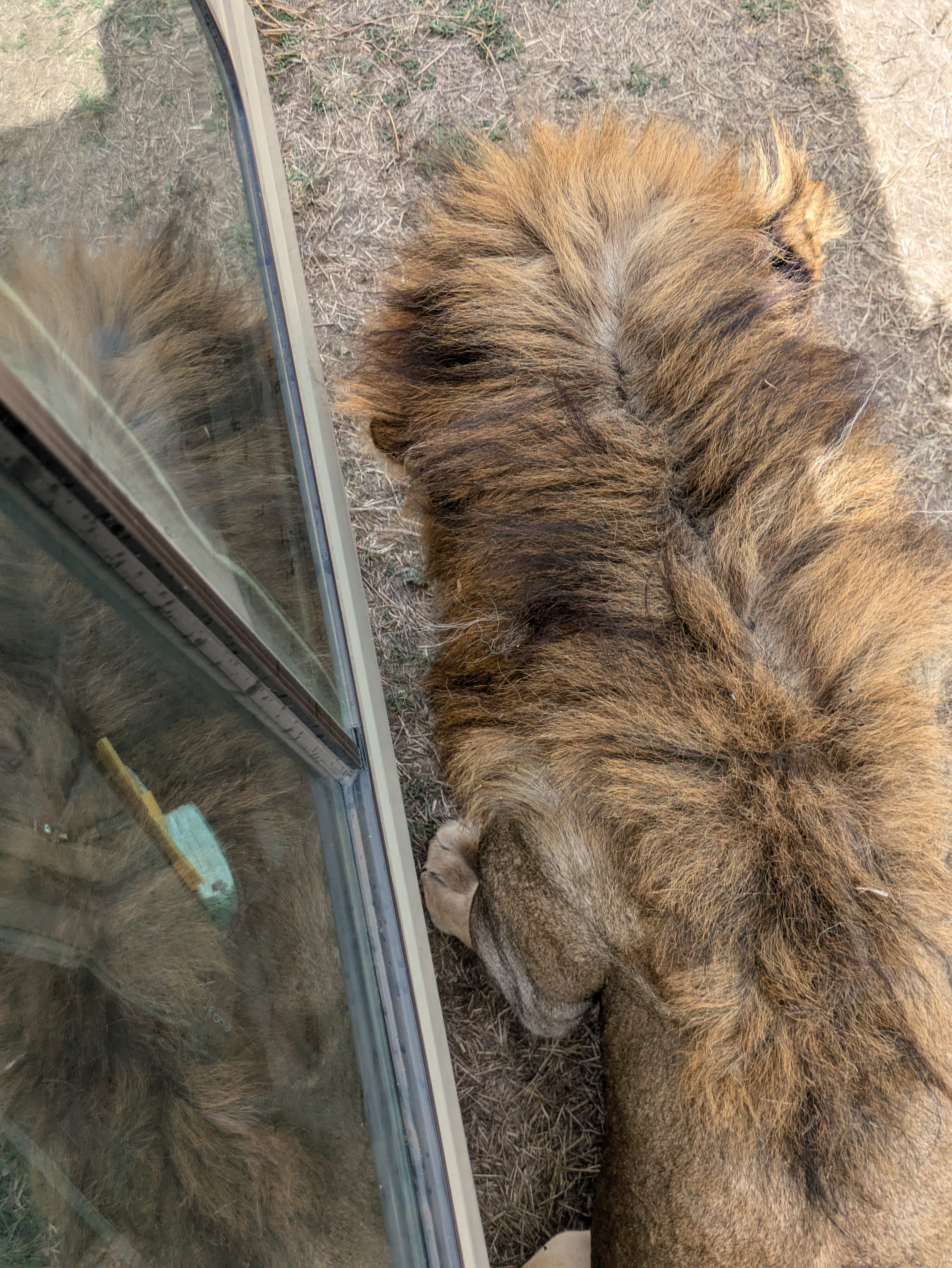 The lion’s mane was petting level to my hand. Don’t tempt me. It took all the strength I had not to reach out and touch it. Honestly, you would want to too when you saw how lush and fluffy his mane was.