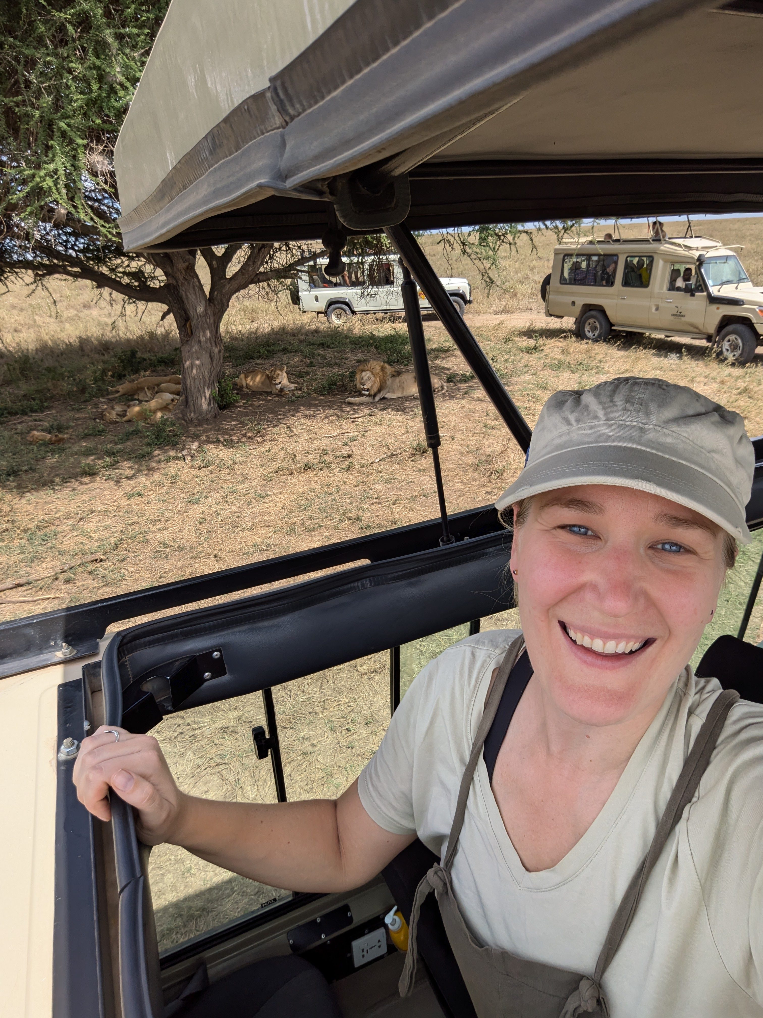 We saw a cheetah (‘s never prosper) sleeping plus a mom and 2 babies, a leopard in a tree, lions and more lions also a pride of lions.