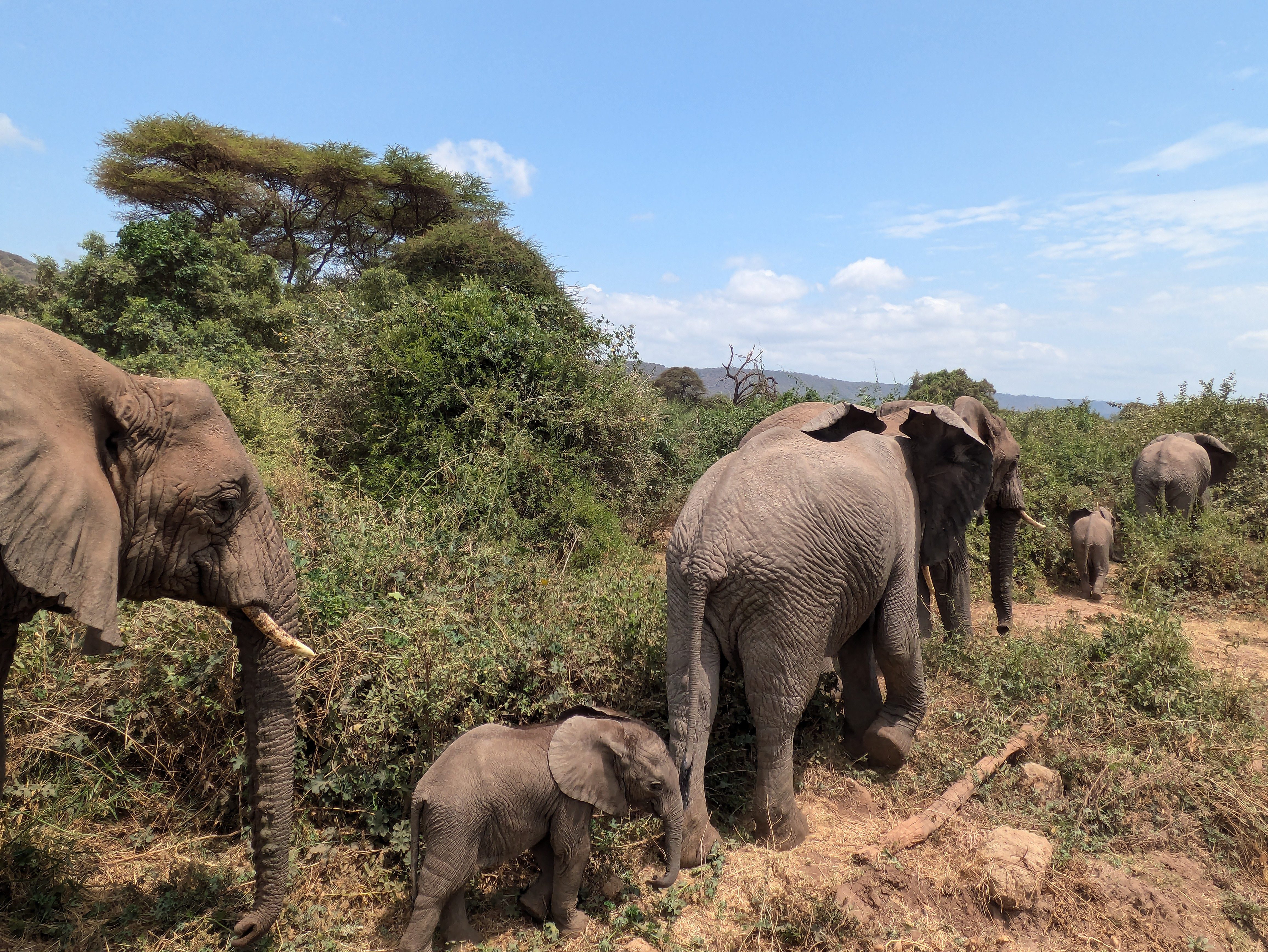 After lunch, we made our way back to the entrance/exit and saw another herd of elephants. Elephants a-plenty here, at least for me.