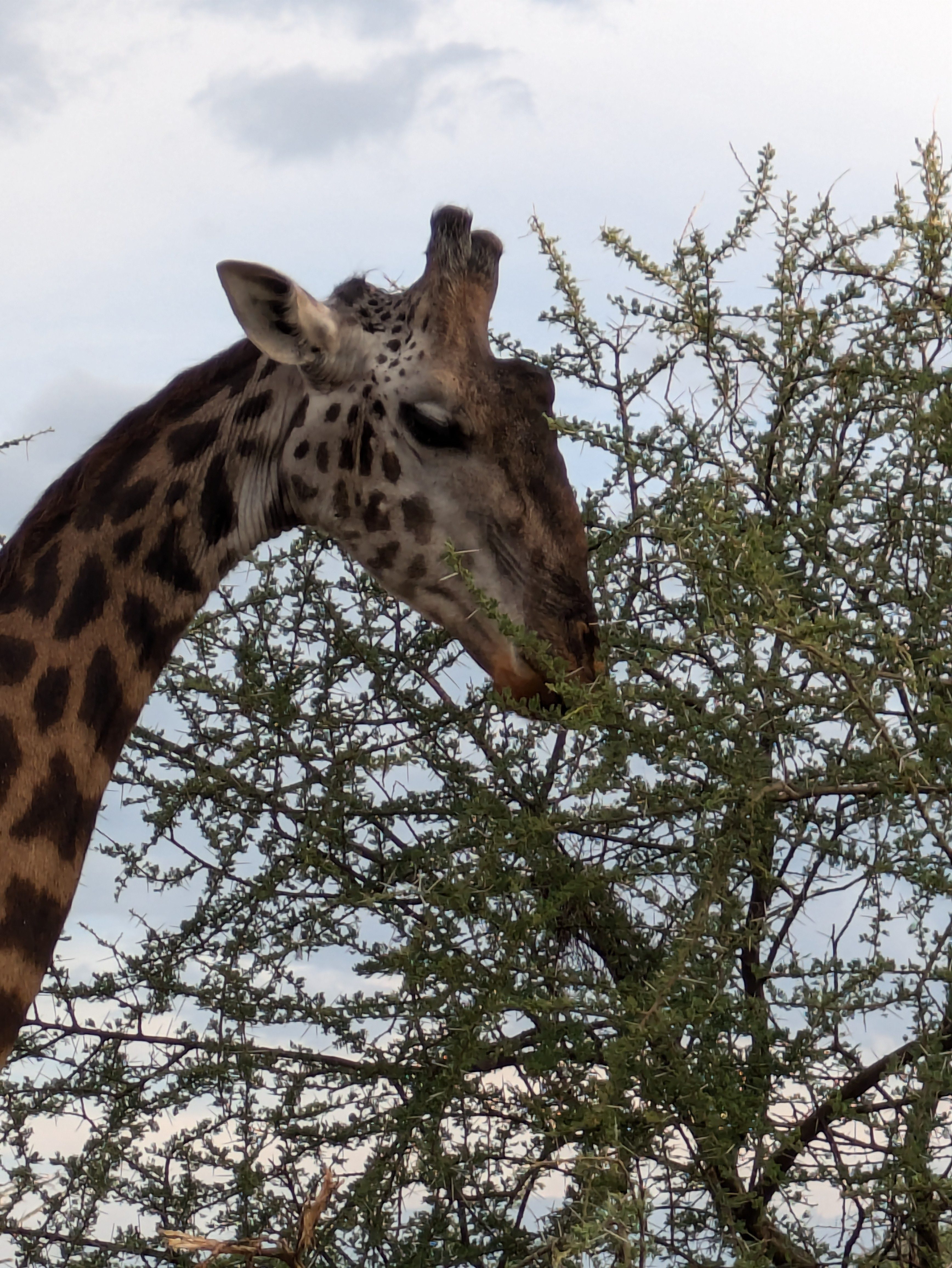 First flavour of the Serengeti was spectacular. We started with some sleeping lions near a tree, zebra and wildebeest a-plenty, giraffes in the distance and while we were focused on them, the driver suddenly stopped the vehicle because a giraffe stepped out from behind a tree. It was so close I could have almost licked it.