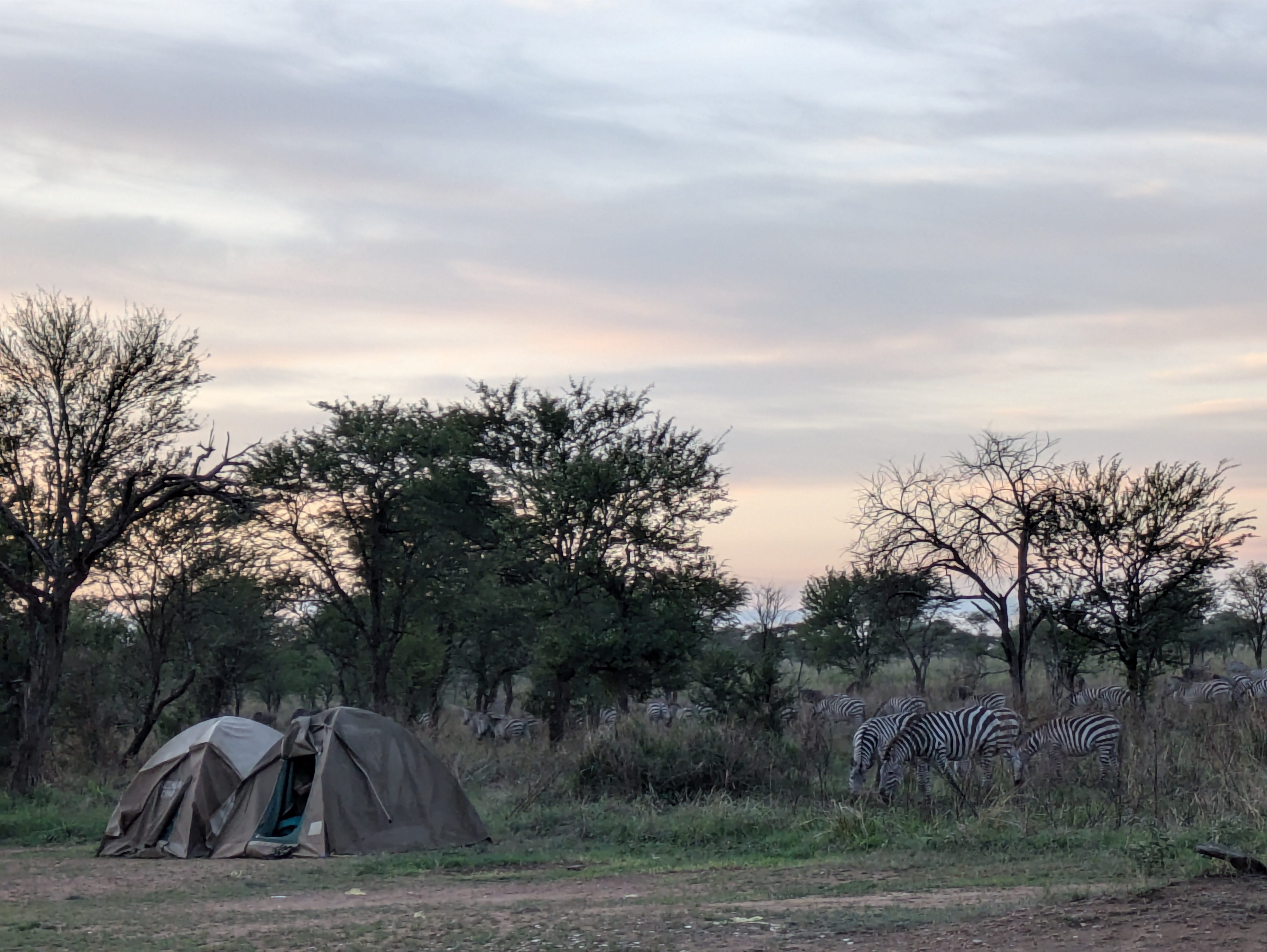In the morning I “woke” (didn’t sleep) to zebras surrounding my tent.