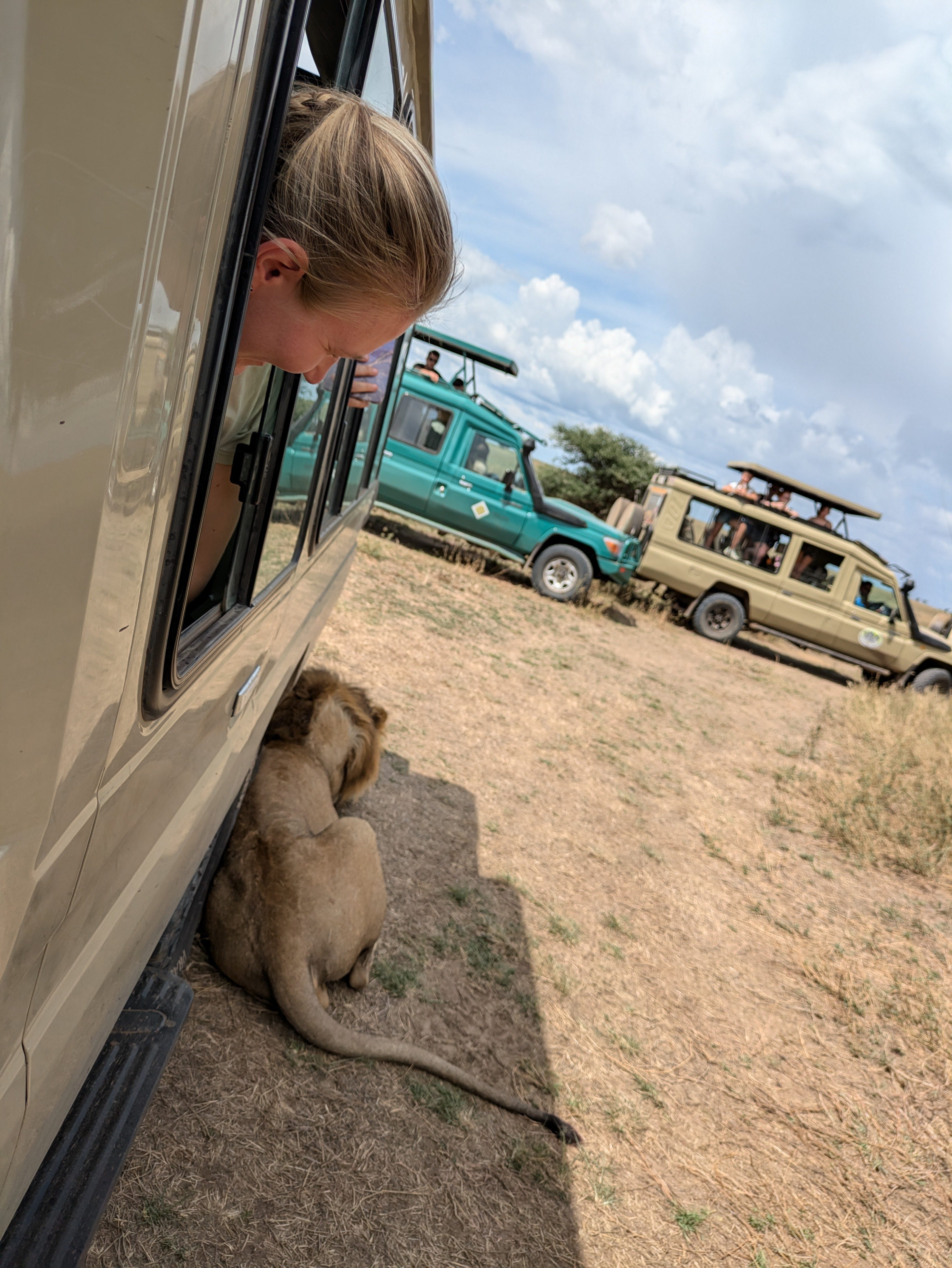Anywho, at one point the lions began to go more under the vehicle and that made a pickle of a situation since they won’t move until sundown and obviously we didn’t want to run over a lion and kill it. Scar definitely did a number on us.