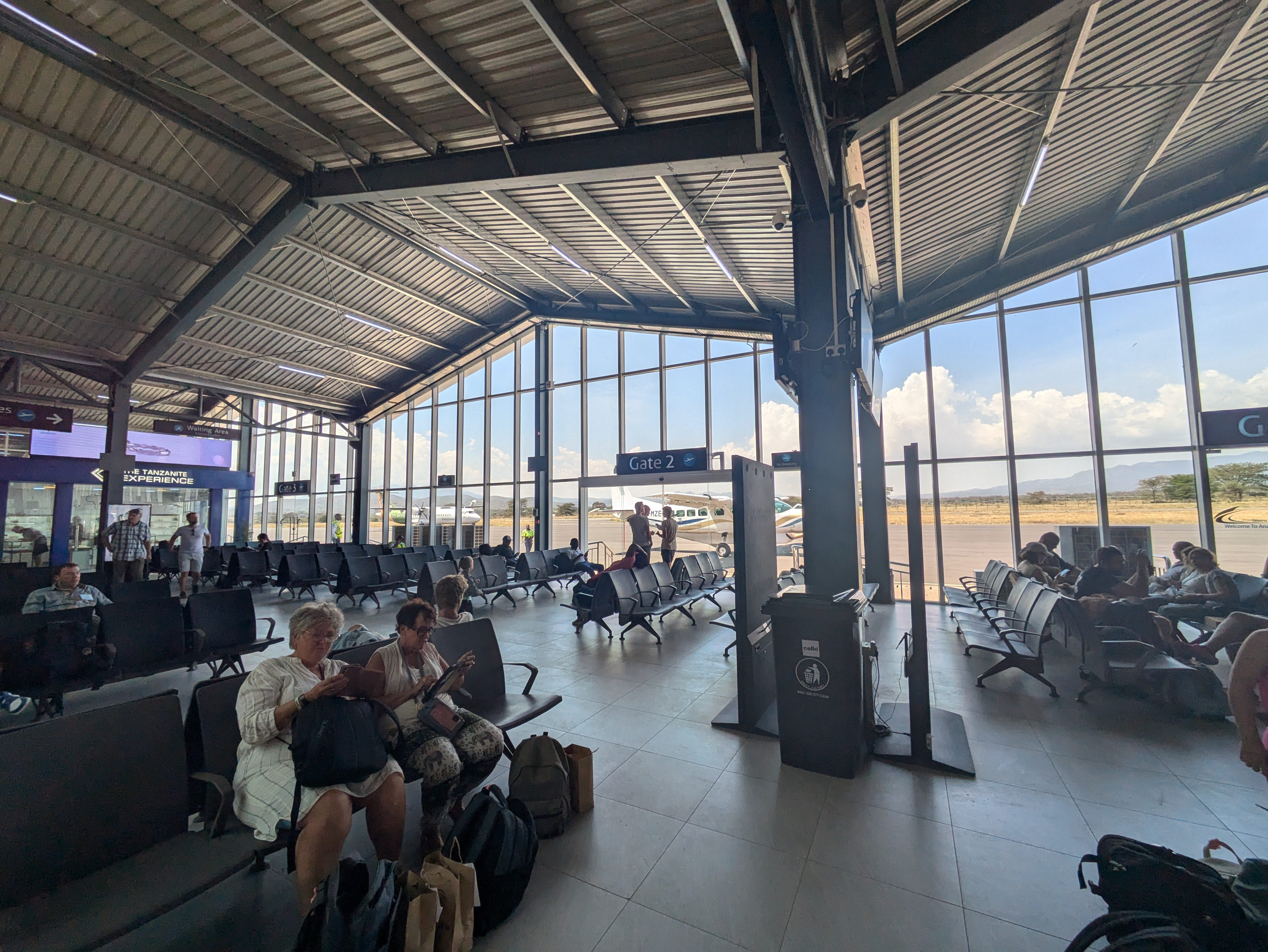 The Arusha airport is very small. You walk through the entrance, and immediately wait in a line to put your bags through a security check then you end up in a big open room where I saw another line. I didn’t have my boarding pass though so I was confused. I realised some desks had paper signs with the names of airlines on them, then it clicked that this was check-in.