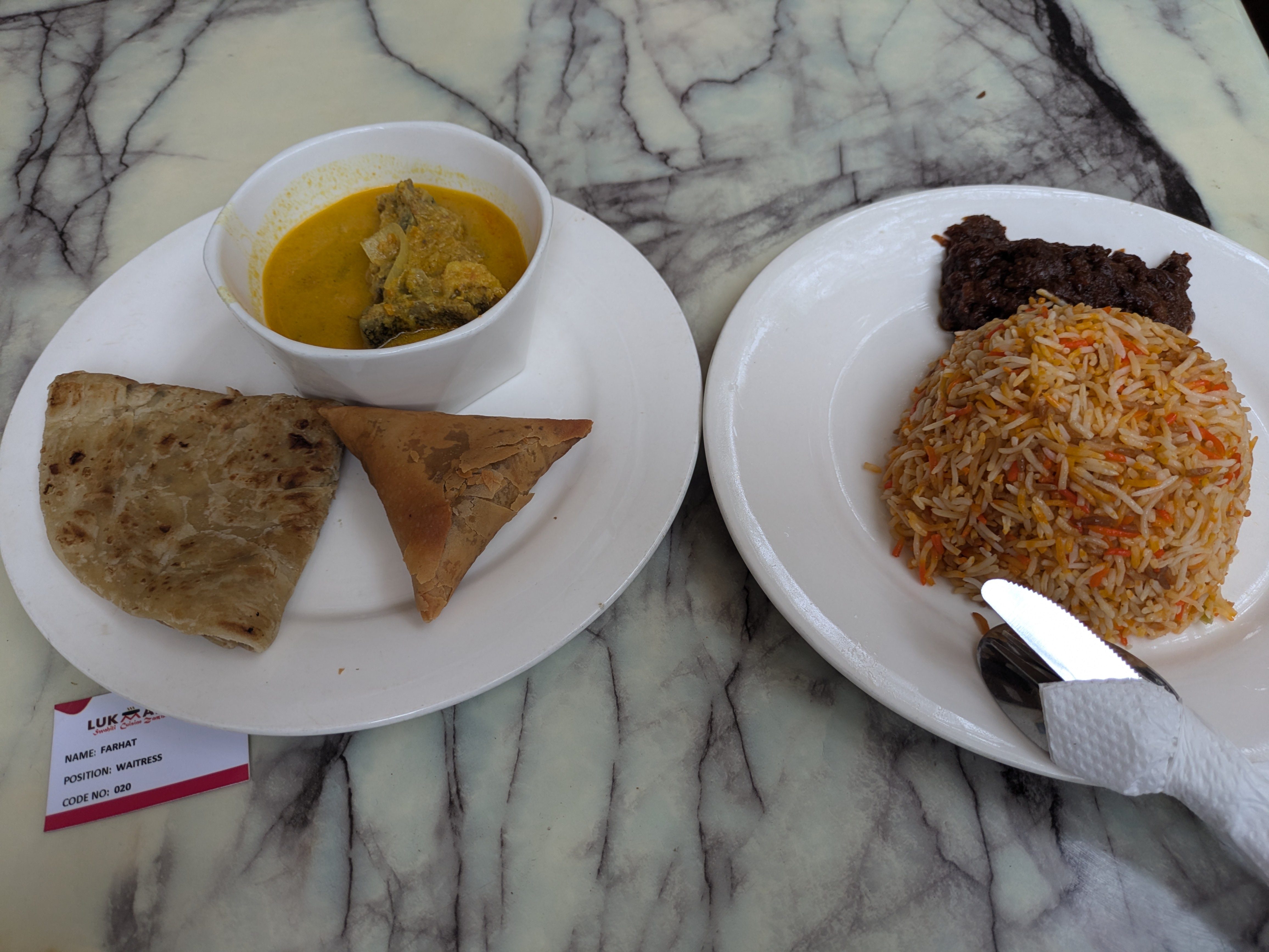 Lukmaan has good local food. I spent around $8/9 for two plate fulls and fresh juice. The waiter took me inside and explained everything to me then took my order and brought me my food. She left a little card with her name on it. Super sweet.